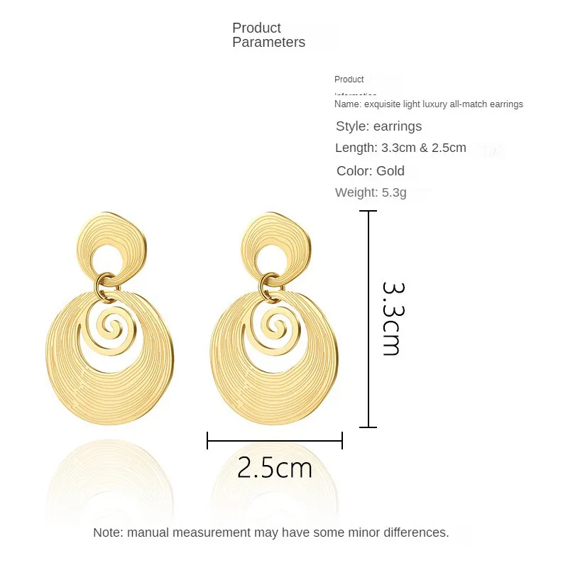 Ces boucles d'oreilles pendantes rondes en acier inoxydable doré arborent un design géométrique ajouré, apportant une touche contemporaine à votre style. Légères et élégantes, elles sont idéales pour compléter vos tenues du quotidien ou pour des occasions spéciales.