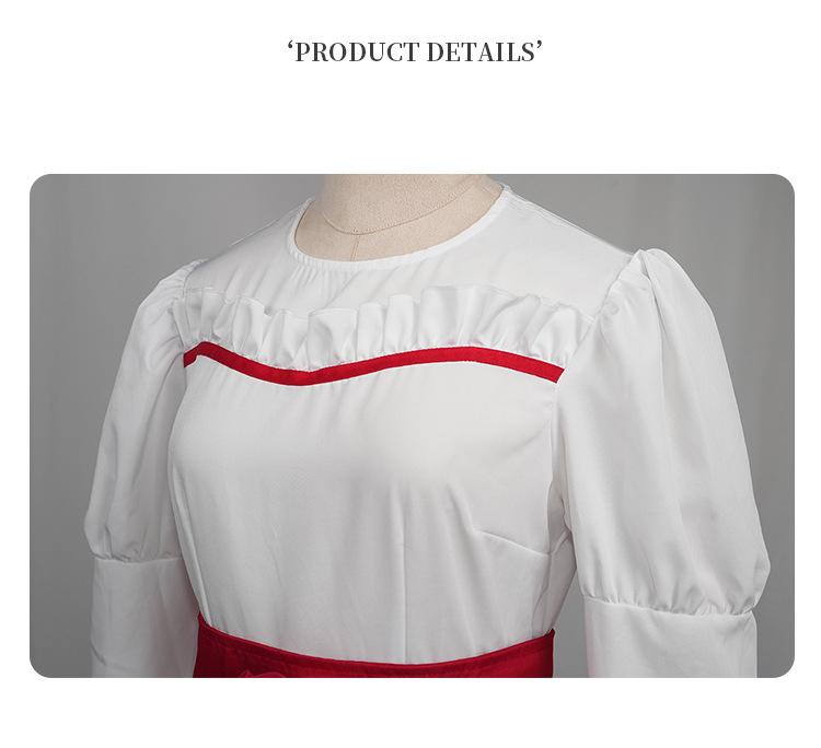 Plonge dans l’univers du paranormal avec ce costume terrifiant inspiré de la célèbre poupée Annabelle. Cette robe blanche au ruban rouge incarne l’innocence... pervertie. Parfait pour faire sensation (et peur) lors d’une soirée Halloween, un cosplay d’horreur ou une fête déguisée diabolique !